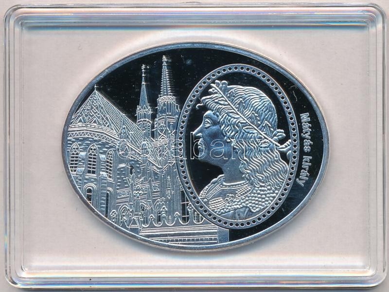 Beschreibung: DN "Hazám, hazám, te mindenem / Legendás épületek - Mátyás király / Mátyás-templom" ezüstözött Cu emlékérem tanúsítvánnyal (46x36mm) T:PP