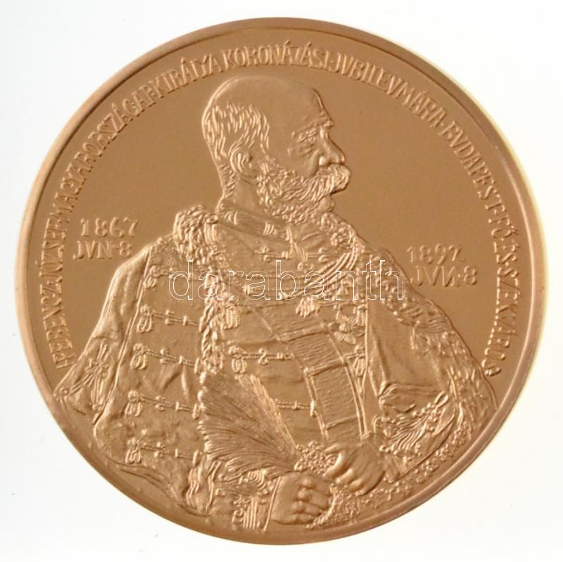 DN "Magyar Aranyóriások - Ferenc József koronázási emlékérem 1892" aranyozott Cu utánveret, tanúsítvánnyal T:PP