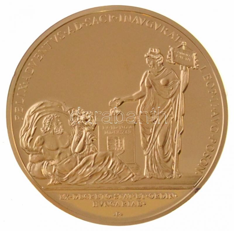 DN "Magyar Aranyóriások - II. Lipót koronázási érem 1790" aranyozott Cu utánveret, tanúsítvánnyal T:PP