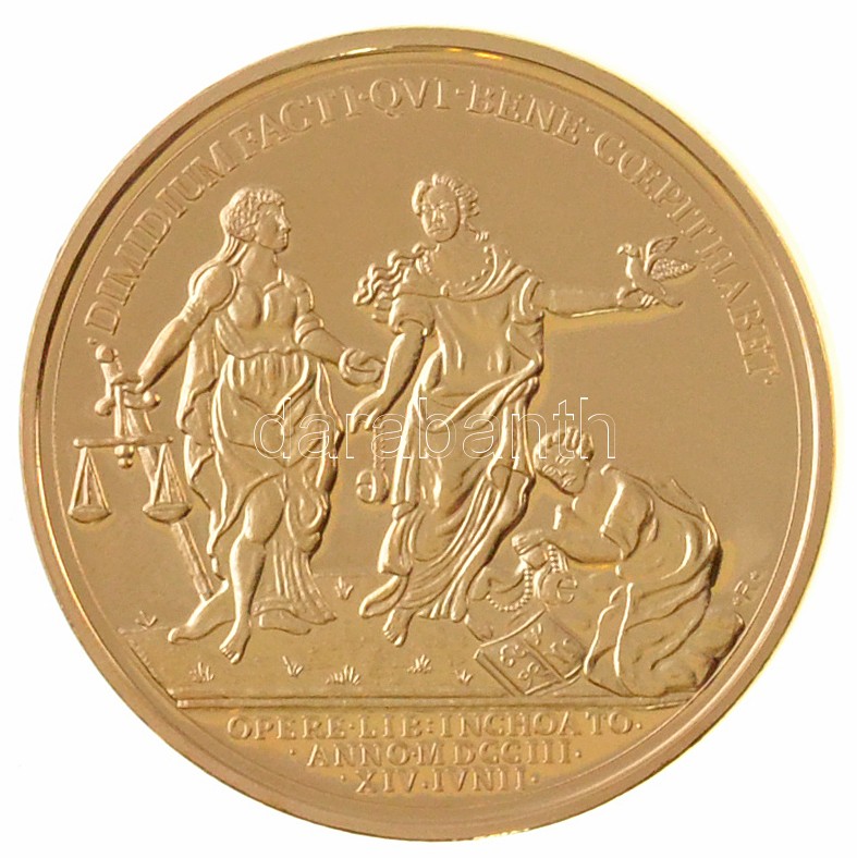Beschreibung: DN "Magyar Aranyóriások - II. Rákóczi Ferenc érem, a szabadságharc kitörésének emlékére 1703" aranyozott Cu utánveret, tanúsítvánnyal T:PP