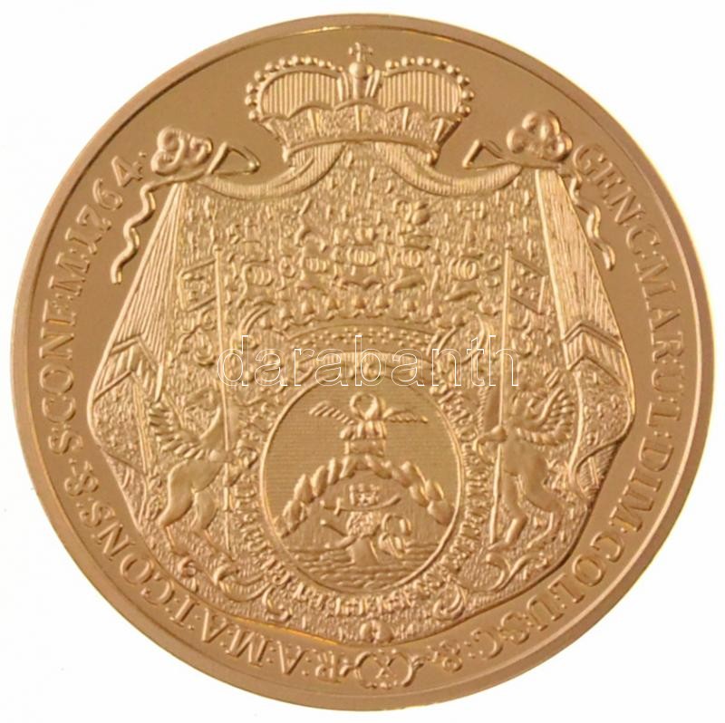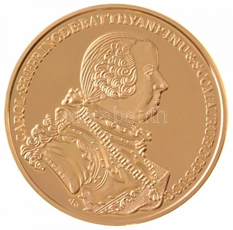 Beschreibung: DN "Magyar Aranyóriások - herceg Batthyány Károly József, 10 Dukát 1764" aranyozott Cu utánveret, tanúsítvánnyal T:PP