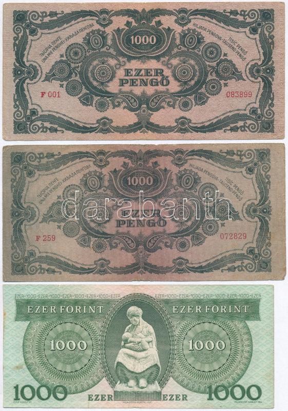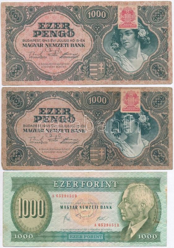 Beschreibung: 1920. 2K csillagos sorszám + 1932. 50P + 1945. 1000P (2x) mindkettő betűhibás "MNB" bélyeggel + 1983. március 25. 1000Ft "A" T:III,III-