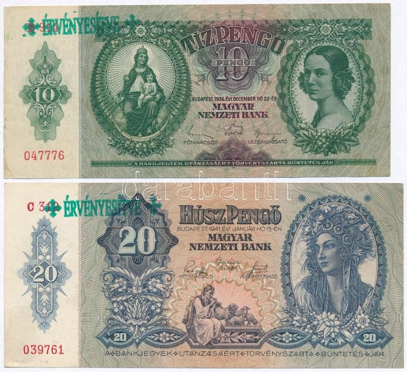 1930. 100P + 1932. 50P + 1936. 10P + 1941. 20P mindegyik hamis nyilask... https://www.darabanth.com/de/299-Fernauktion/299.0/Numismatik/Ungarische-Banknoten~400007/1930-100P-plus-1932-50P-plus-1936-10P-plus-1941-20P-mindegyik-hamis-nyilaskeresztes-ERVENYESITVE-fel~II1603252