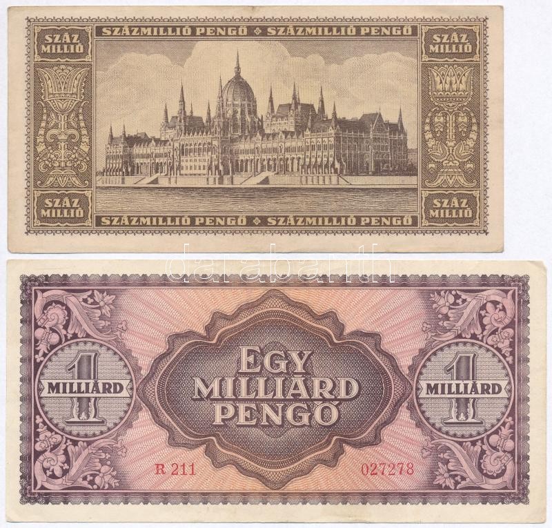 1946. 100.000.000P + 1.000.000.000P + 10.000MP + 100.000MP + 10.000BP ... https://www.darabanth.com/de/299-Fernauktion/299.0/Numismatik/Ungarische-Banknoten~400007/1946-100000000P-plus-1000000000P-plus-10000MP-plus-100000MP-plus-10000BP-mindegyik-hamis-Revizional~II1603238