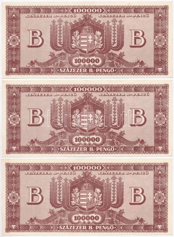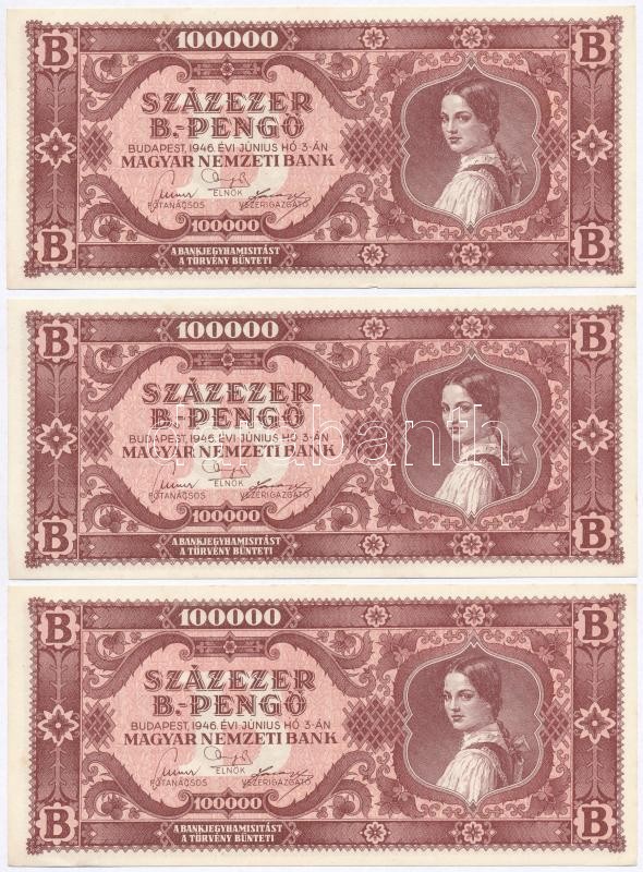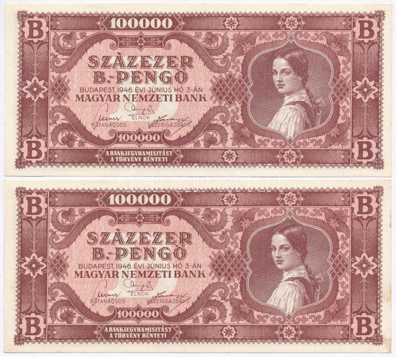 1946. 100.000BP (5x) T:I,I- https://www.darabanth.com/de/299-Fernauktion/299.0/Numismatik/Ungarische-Banknoten~400007/1946-100000BP-5x-TI-I-~II1601096