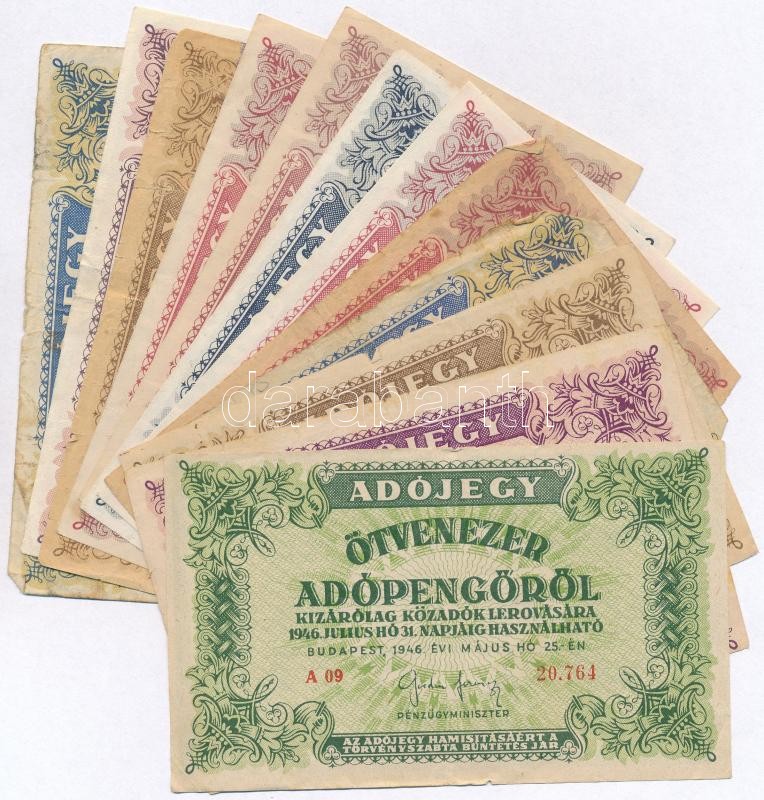 1946. 12db-os vegyes magyar adópengő bankjegy tétel, közte fordított c... https://www.darabanth.com/de/299-Fernauktion/299.0/Numismatik/Ungarische-Banknoten~400007/1946-12db-os-vegyes-magyar-adopengo-bankjegy-tetel-kozte-forditott-cimeres-is-TII-III-III-~II1601536