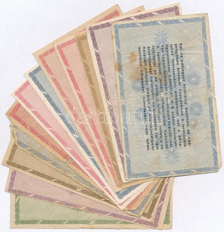Beschreibung: 1946. 12db-os vegyes magyar adópengő bankjegy tétel, közte fordított címeres is T:II,III,III-