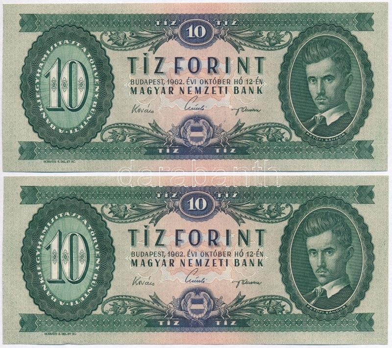 Beschreibung: 1962. 10Ft (2x) sorszámkövetők T:II törés nélküli hajtás