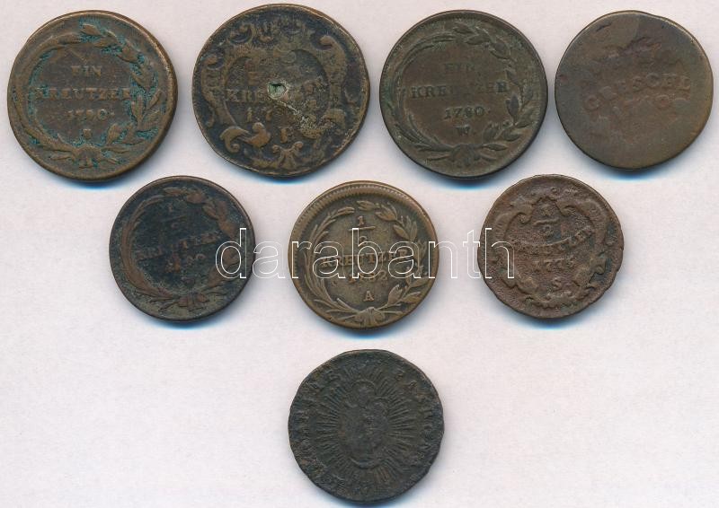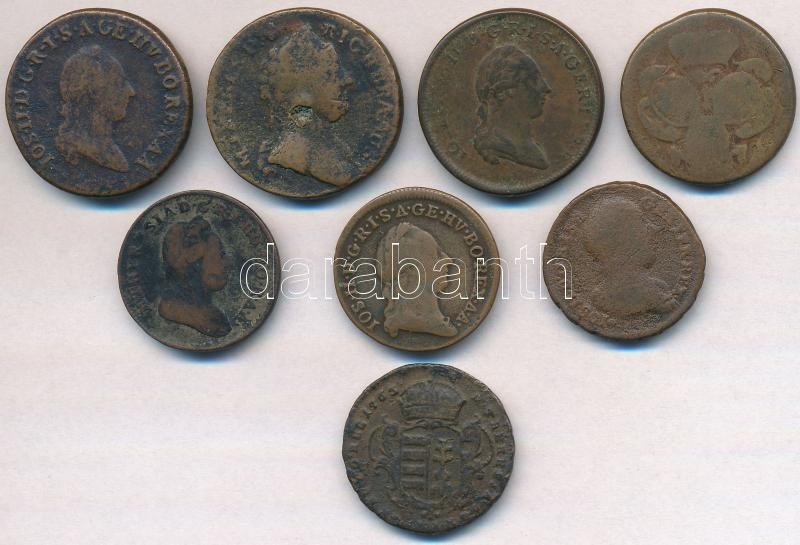 Vegyes: 8db-os, nagyrészt rossz állapotú rézpénz tétel az 1760-1782 közötti időszakból, közte osztrák, magyar és lengyel verdejelűek T:2-,3,3- Mixed: 8pcs of copper coins, mainly in bad condition, from the 1760-1782, including Austrian, Hungarian and Polish mint marks C:VF,F,VG
