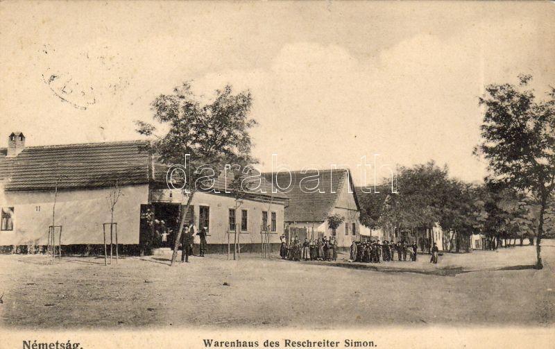 Németság Warenhaus des Reschreiter Simon https://www.darabanth.com/de/3-Gross-Auktion/3.1/Ansichtskarten-Ungarn/~915/Nemetsag-Warenhaus-des-Reschreiter-Simon~II60596