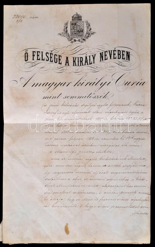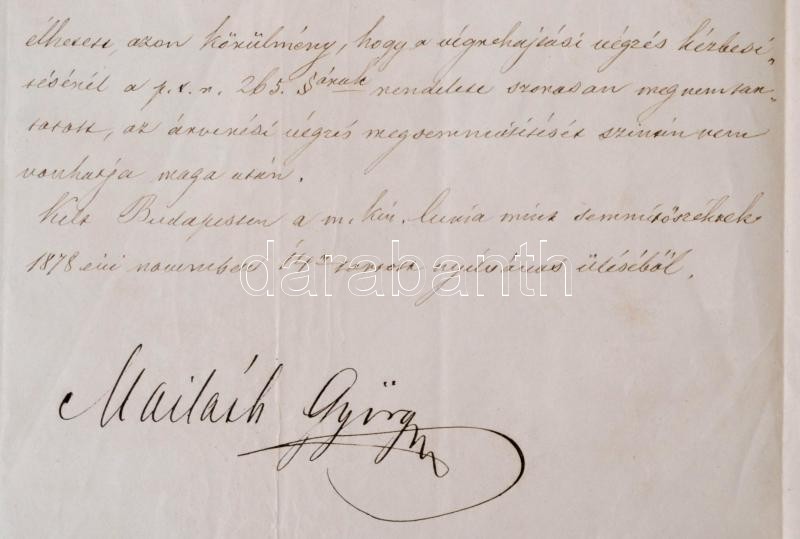 1878 Magyar királyi kúria mint semmítőszék végzése végrehajtási ügyben... https://www.darabanth.com/de/30-Gross-Auktion/30.1/Andere-Sammelgebiete/Dokument~12209/1878-Magyar-kiralyi-kuria-mint-semmitoszek-vegzese-vegrehajtasi-ugyben-Mailath-Gyorgy-~II1862660