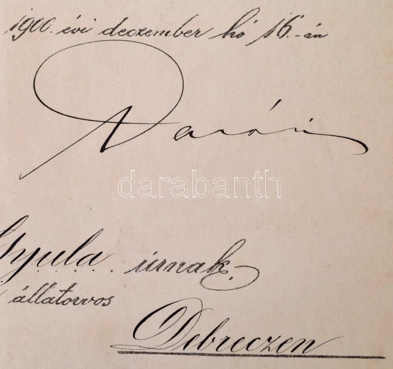 1900 Budapest, állatorvosi kinevezés Bummel Gyula temesvári állatorvos... https://www.darabanth.com/de/30-Gross-Auktion/30.1/Andere-Sammelgebiete/Dokument~12209/1900-Budapest-allatorvosi-kinevezes-Bummel-Gyula-temesvari-allatorvos-reszere-Daranyi-Igna~II1861883