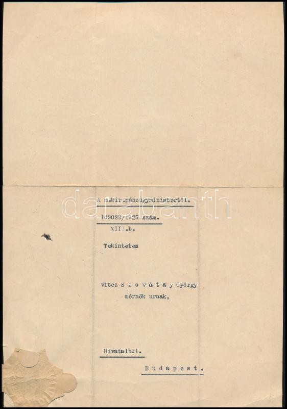 1926 Budapest, főmérnöki kinevezés Szovátay György részére, Bud János ... https://www.darabanth.com/de/30-Gross-Auktion/30.1/Andere-Sammelgebiete/Dokument~12209/1926-Budapest-fomernoki-kinevezes-Szovatay-Gyorgy-reszere-Bud-Janos-1880-1950-penzugy~II1861870