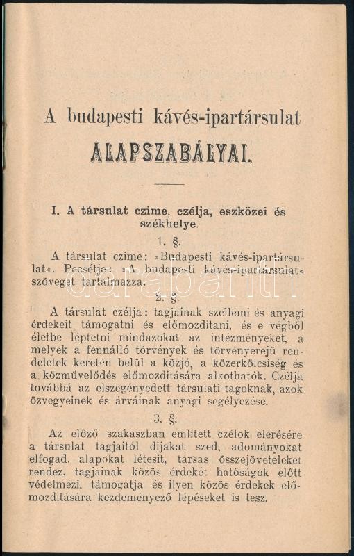 1900 A Budapesti Kávés Ipartársulat Alapszabályai. Bp., 1900. Buschman... https://www.darabanth.com/de/30-Gross-Auktion/30.1/Andere-Sammelgebiete/Drucksachen~12197/1900-A-Budapesti-Kaves-Ipartarsulat-Alapszabalyai-Bp-1900-Buschmann-16p-16-5-cm~II1857984