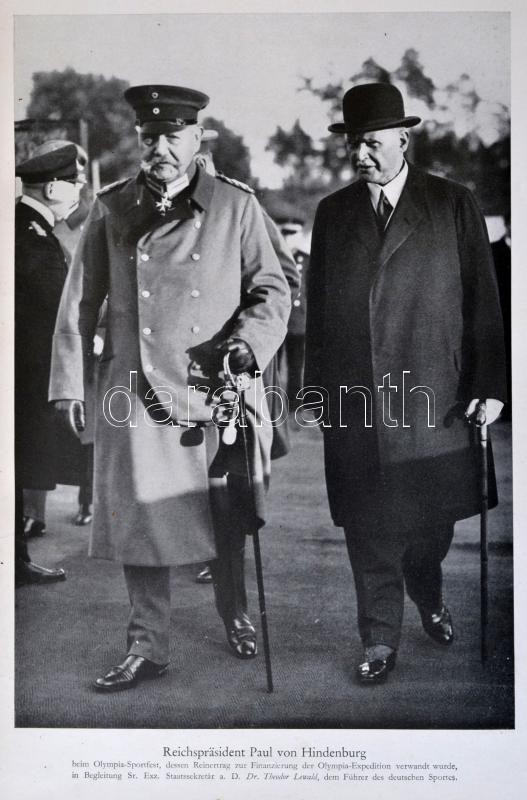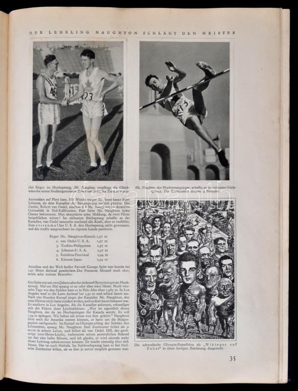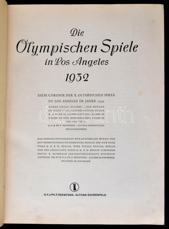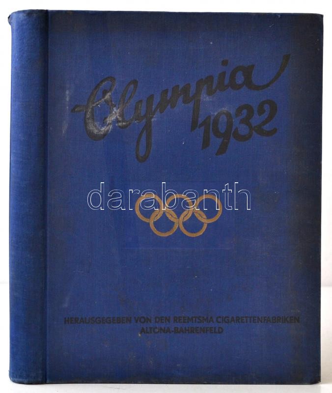 1932 Los Angelesi Olimpia cigaretta gyűjtőkép album kompletten, 142 oldal + kihajtható mellékletek. Kissé piszkos egészvászon kötésben. / Los Angeles Olympic Games cigarette images collectors album completed. In linen binding. 142p.