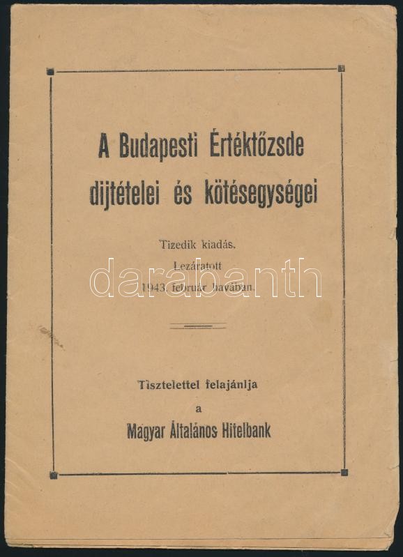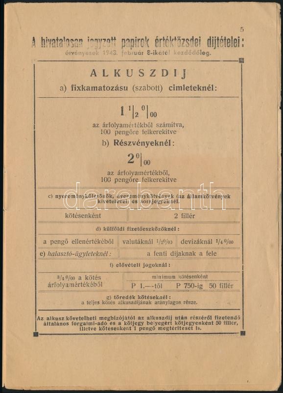 1943 A Budapesti Értéktőzsde díjtételei és kötésegységei. 15p. 12x17 c... https://www.darabanth.com/de/30-Gross-Auktion/30.1/Andere-Sammelgebiete/Drucksachen~12197/1943-A-Budapesti-Ertektozsde-dijtetelei-es-kotesegysegei-15p-12x17-cm~II1856128