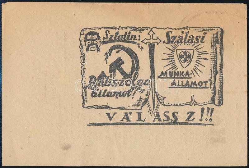 Beschreibung: 1944 Nyilaskeresztes Szálasi szórólap, kétoldalas, jó állapotban / Hungarian Arrow Cross Party flyer, in good condition