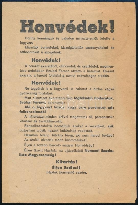 1944 Nyilaskeresztes Szálasi szórólap, kétoldalas, jó állapotban / Hun... https://www.darabanth.com/de/30-Gross-Auktion/30.1/Andere-Sammelgebiete/Drucksachen~12197/1944-Nyilaskeresztes-Szalasi-szorolap-ketoldalas-jo-allapotban-Hungarian-Arrow-Cross-Party~II1862001