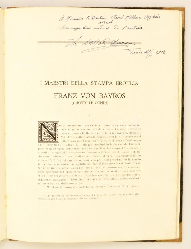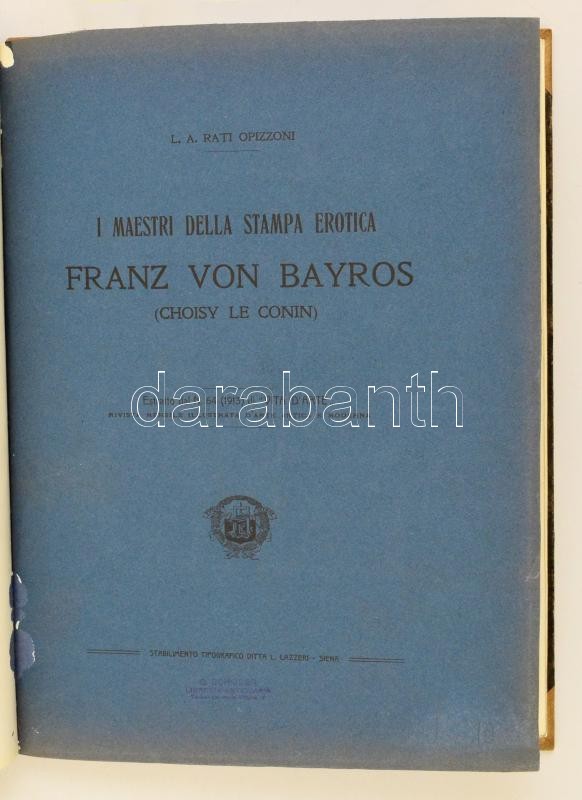 L. A. Rati Opizzoni: Imaestri della stampa erotica Fanz von Bayros (Choisy le conin) Siena, 1913. Lazzeri. 23p + 2 t (egészoldalas fénnyomatok) a szöveg között számos erotikus ex librisszel