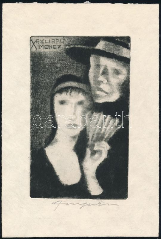 Beschreibung: Michel Fingesten (1884-1943): Ex libris Ximenez. Rézkarc, papír, jelzett, 15,5×9,5 cm
