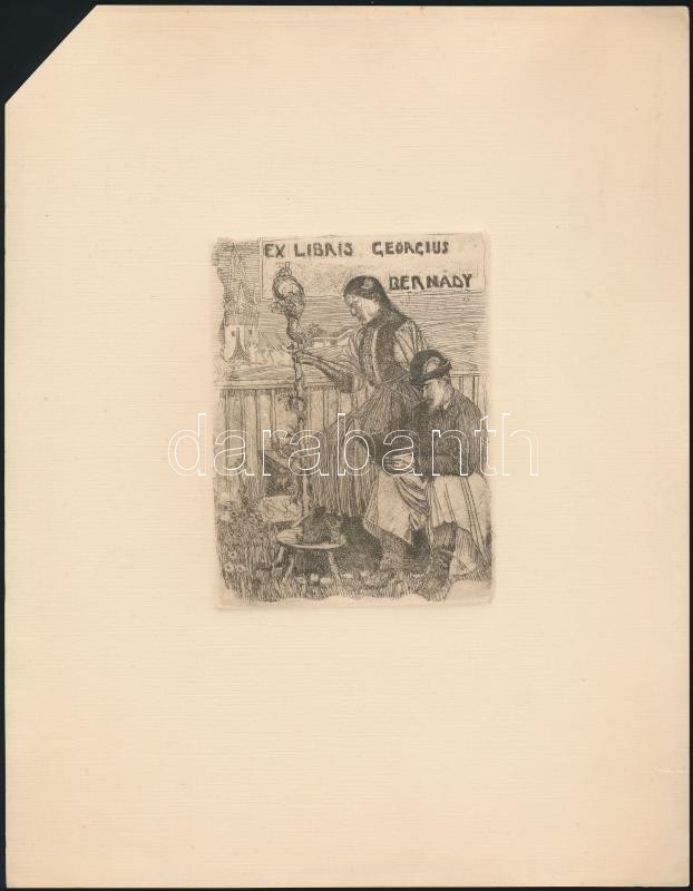 Beschreibung: Nagy Sándor: (1868-1950): Ex libris Bernardy György (1864-1938) Marosvásárhely polgármestere részére.. Rézkarc, papír.12x8,5 cm