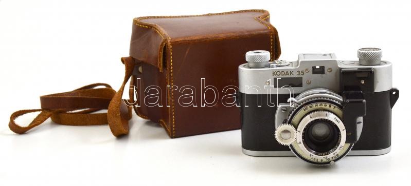 cca 1938 Kodak Eastman: Kodak 35 távmérős 35mm-es fényképezőgép, Kodak Anastigmat Special 50mm f/3.5 objektívvel, működőképes, szép állapotban, eredeti bőr tokjában / Vintage Kodak 35mm rangefinder camera, in good, working condition, with original leather case