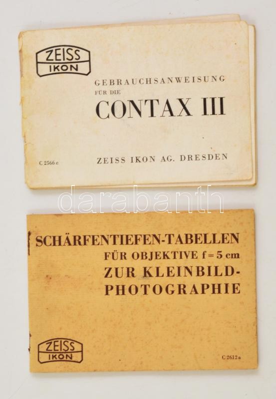 cca 1940 Zeiss Ikon Contax III távmérős fényképezőgép, Carl Zeiss Jena Sonnar 50mm f/2 objektívvel, működőképes állapotban, kopásokkal, eredeti német nyelvű használati utasítással / Vintage Contax III rangefinder camera with Sonnar lens, in working condition, with original manual