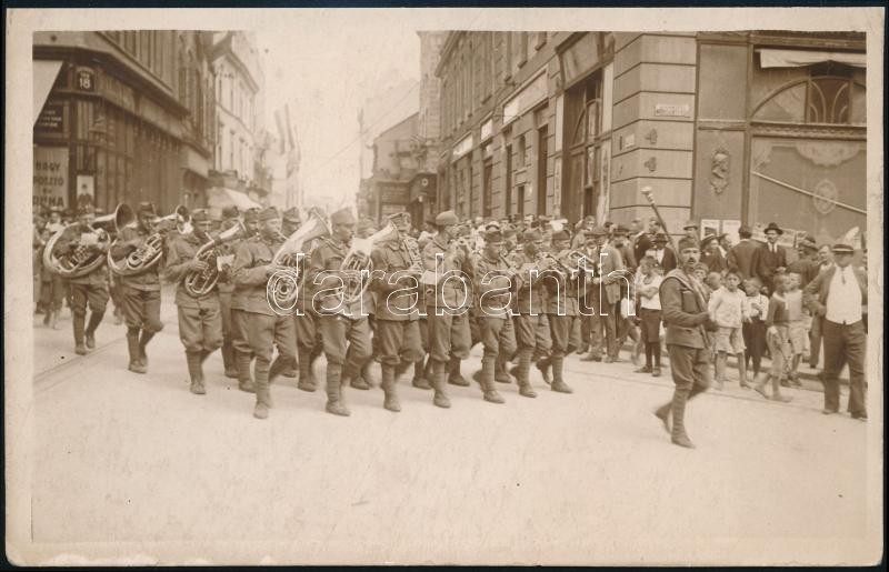 1921. augusztus 21. Horthy Miklós Nemzeti Hadseregének bevonulása Pécs... https://www.darabanth.com/de/30-Gross-Auktion/30.1/Andere-Sammelgebiete/Foto~12613/1921-augusztus-21-Horthy-Miklos-Nemzeti-Hadseregenek-bevonulasa-Pecsre-A-katonazenekar-Kazin~II1858294