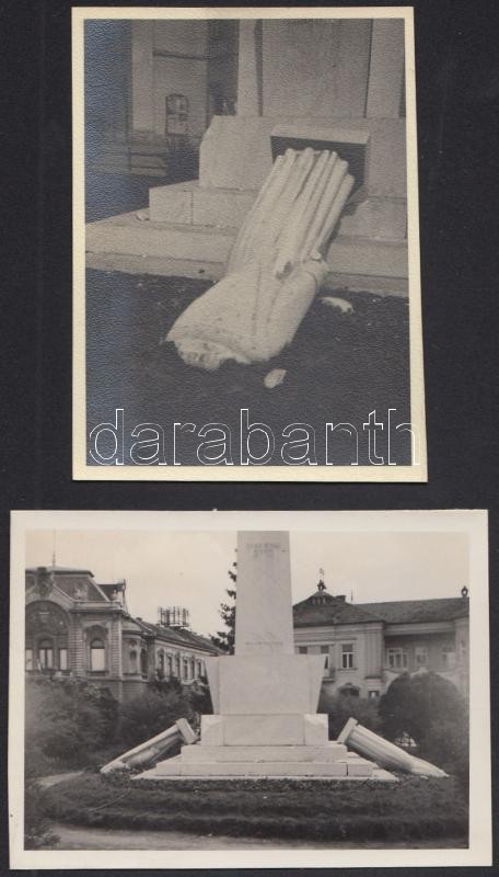 Beschreibung: 1941 Szabadka, Jovan Nenad ledöntött szobra, 2 db fotó, hátoldalon feliratozva, 8,5×6 cm / Subotica, demolished statue of Jovan Nenad