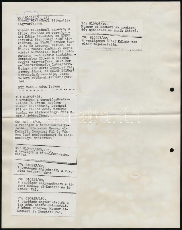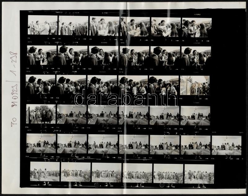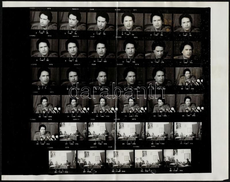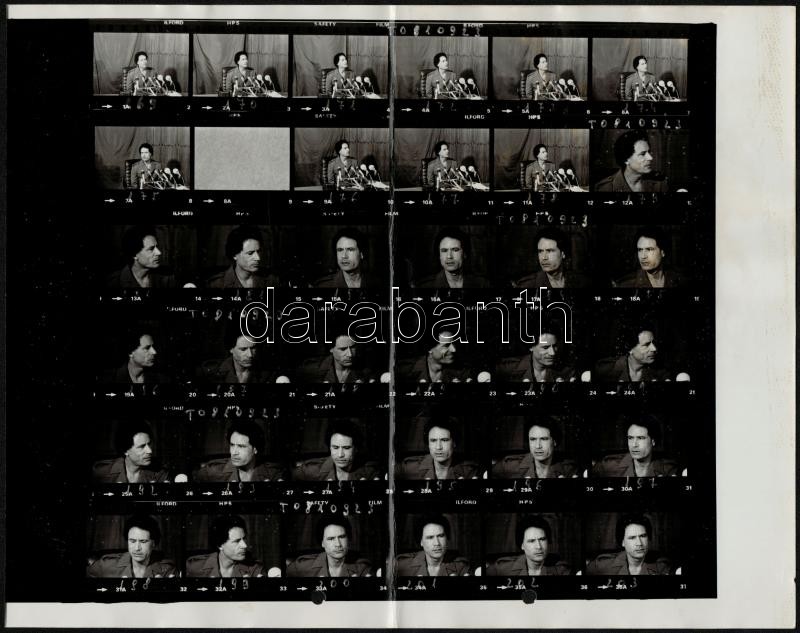 1981 Moamer el-KADHAFI látogatása Magyarországon és találkozása Kádár Jánossal, 252 db kontakt másolat 7 db 24x30-as fotópapíron, felirat az egyik hátoldalán, a képek mérete 24x36 mm