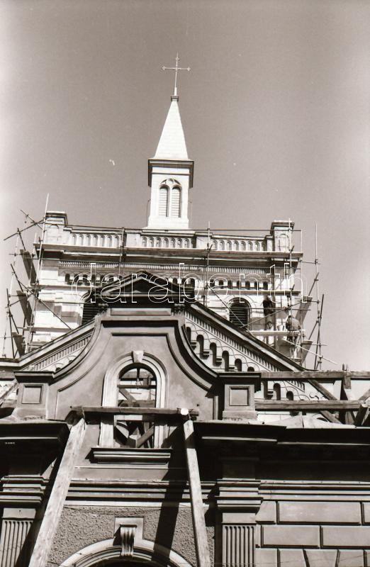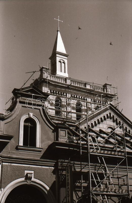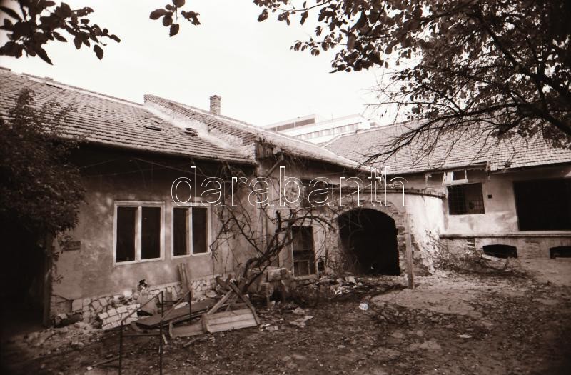 Beschreibung: 1984 Kecskemét régi utcái, házai és a város fejlődését bemutató új épületek, látképek, 61 db vintage negatív, feliratozva a tároló tasakokon, 24x36 mm