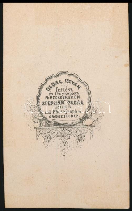 Beschreibung: cca 1863 Oldal István nagybecskereki festész és fényképész műtermében készült, vizitkártya méretű portréfotó, 10x6 cm