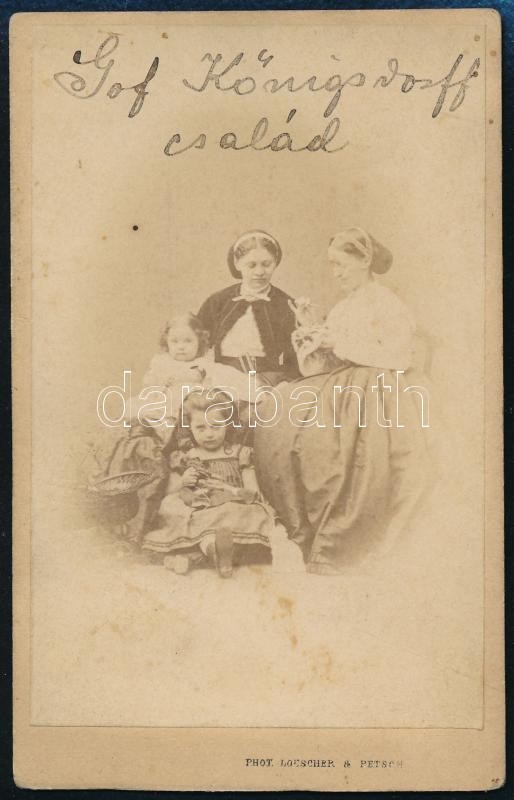 cca 1865 A gróf Königsdorff család, keményhátú fotó Loescher és Petsch... https://www.darabanth.com/de/30-Gross-Auktion/30.1/Andere-Sammelgebiete/Foto~12613/cca-1865-A-grof-Konigsdorff-csalad-kemenyhatu-foto-Loescher-es-Petsch-mutermebol-felira~II1862299