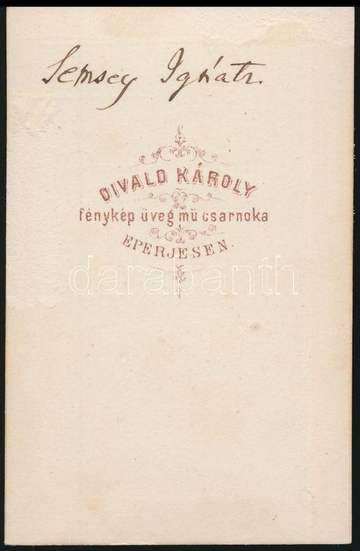 cca 1866 Eperjes, Semsey Ignátz feliratozott, vizitkártya méretű fényk... https://www.darabanth.com/de/30-Gross-Auktion/30.1/Andere-Sammelgebiete/Foto~12613/cca-1866-Eperjes-Semsey-Ignatz-feliratozott-vizitkartya-meretu-fenykepe-amelyet-Divald-Kar~II1852572