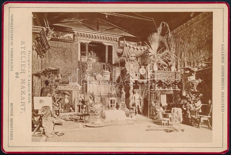Beschreibung: cca 1870 Hans Makart (1840-1884) osztrák festő műterme, keményhátú fotó Angerer bécsi műterméből, szép állapotban, 11×17 cm / Atelier of Hans Makart