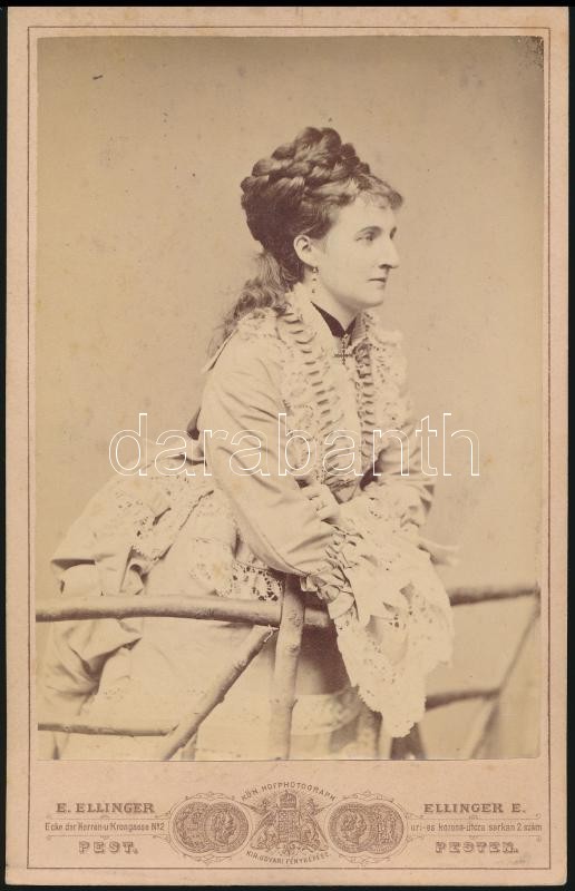 cca 1870 Klotild főhercegnő (1846-1926), József Károly főherceg (1833-1905) felesége, keményhátú fotó, Pest, Ellinger Ede műterméből, 17x11 cm./ cca 1870 Archdukess Clotilde of Saxe-Coburg and Gotha (1846-1926) , wife of Archduke Joseph Karl of Austria (1833-1905), board photo, Pest, Eduard Ellinger, 17x11 cm.