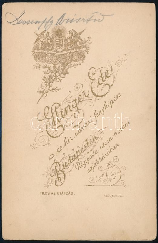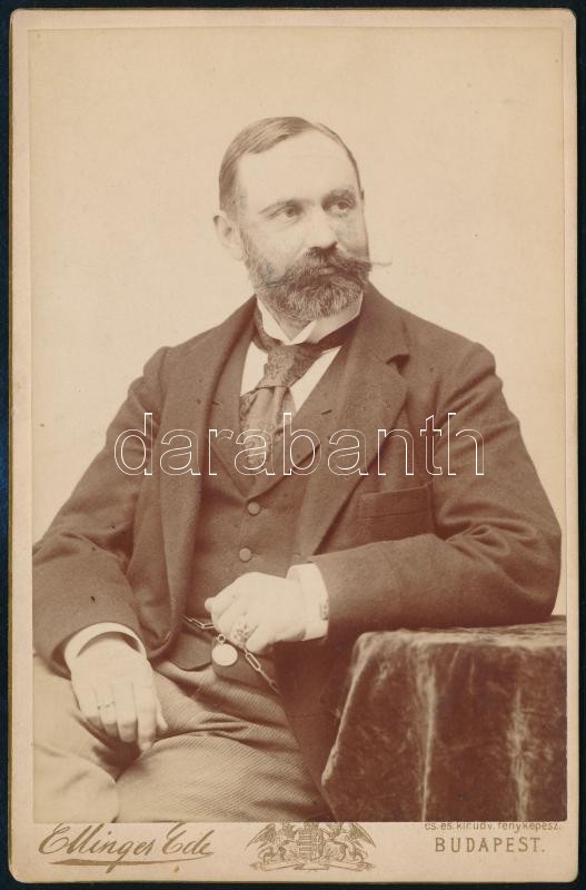 cca 1895 Dessewffy Arisztid (1854-1922) képviselőházi háznagyi titkár, politikai író, keményhátú fotó Ellinger Ede budapesti műterméből, hátoldalon feliratozva, 16,5×10,5 cm