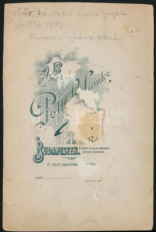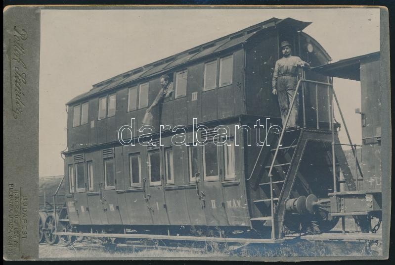 Beschreibung: cca 1910 Emeletes személyvonat a Veszprém-Jutas vonalon, keményhátú fotó Pottok Sándor budapesti műterméből, hátulján feliratozva, 10,5×16 cm