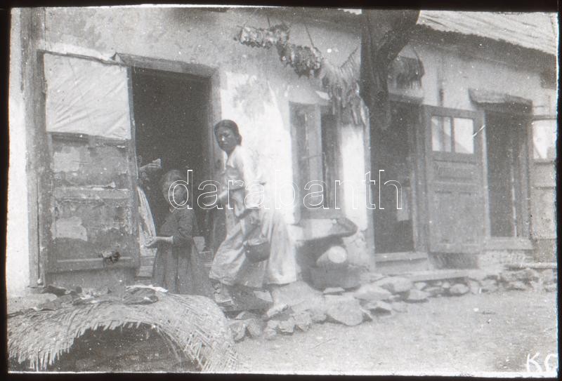 Beschreibung: cca 1910 Koreai lakóház 4x6 cm-es üveg diapozitív / cca 1910 Korean house. vintage glass positive photo 4x6 cm