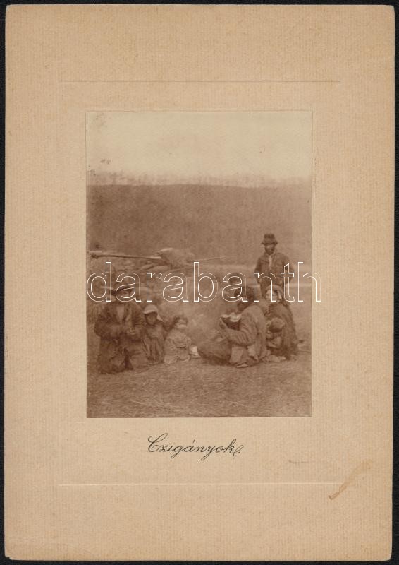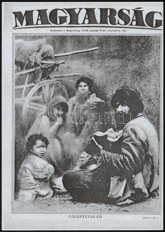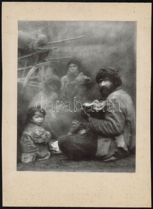 cca 1912 Kerny István (1879-1963) budapesti fotóművész hagyatékából 2 db jelzés nélküli vintage fotó (Czigányok c. világszerte ismert alkotásának őseredetije és egy részlete, amely a nemzetközi kiállításokon szerepelt), + egy újság címoldalának fénymásolata, 11x8 cm és 20,5x16 cm