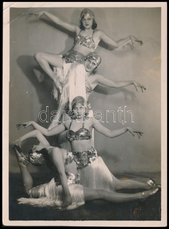 cca 1920-1930 Táncoslányok, fotó Willi Ströminger prágai műterméből, jelzett (hidegpecsét/hátulján), sarkán kis töréssel, 15×11 cm /