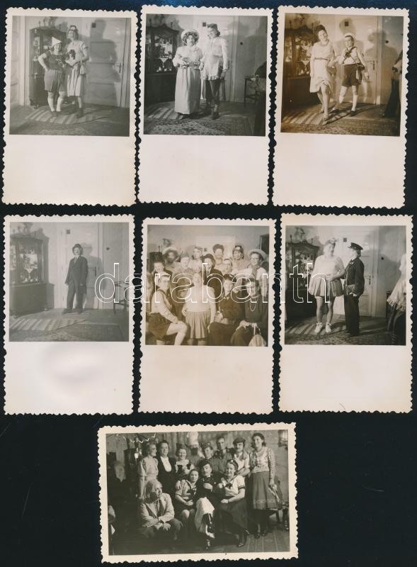 cca 1940 Farsangi jelenetek, 16 db fotó, 9×6 cm https://www.darabanth.com/de/30-Gross-Auktion/30.1/Andere-Sammelgebiete/Foto~12613/cca-1940-Farsangi-jelenetek-16-db-foto-9C3976-cm~II1855741