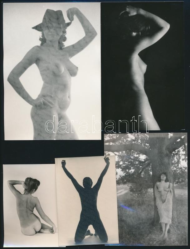 cca 1977 Hétvégi kikapcsolódás, szolidan erotikus felvételek, 7 db vintage fotó és/vagy mai nagyítás vegyesen, + 12 db vintage negatív, a pozitív és a negatív képek között nincs kapcsolat, 24x36 mm és 25x18 cm között