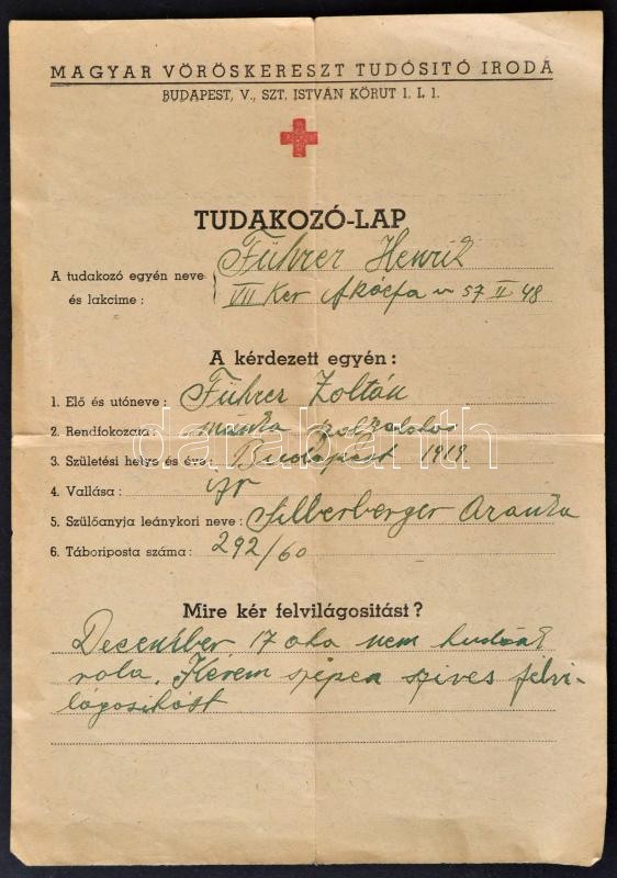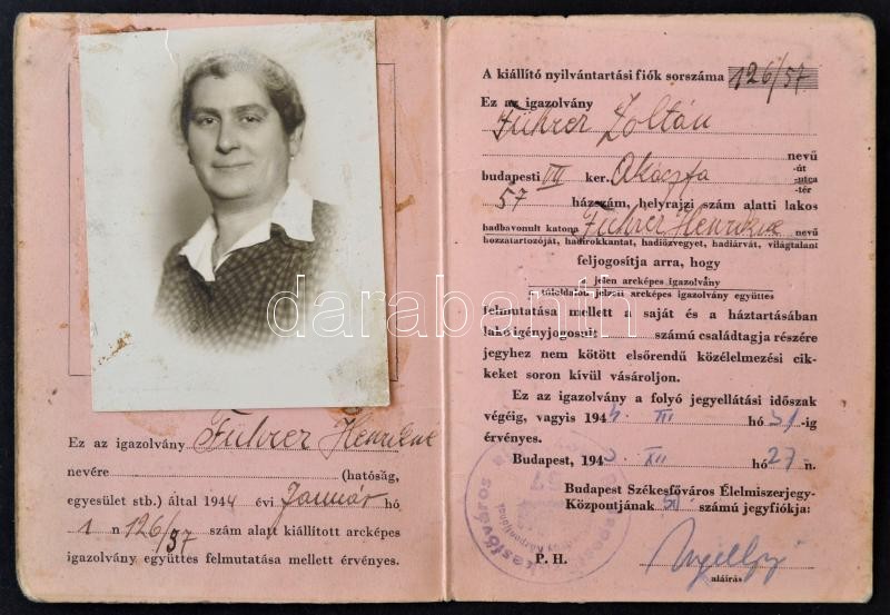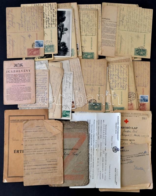 1940-1944 Führer Zoltán, és József munkaszolgálatos testvérpár hagyatéka, számos fotó, és levelezőlap, 2 db igazolvány, és más papírok, közte a Pesti Izraelita Hitközség elemi iskolai értesítőjével (1925-1929), valamint utólagos hazasság által történt törvényesítésének anyakönyvi följegyzéséről szóló irat (1920), a többi 1940-1944 közötti.