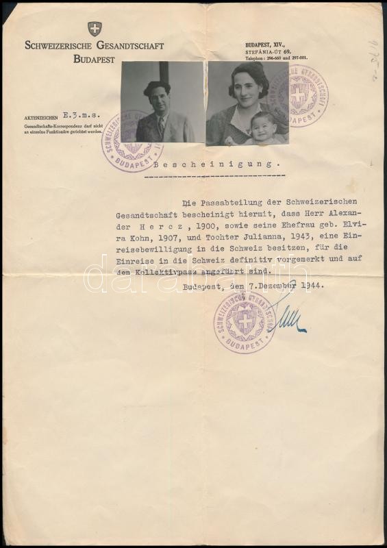 1944 Svájci követségi védlevél (Schutzpass) Hercz Sándor és családja r... https://www.darabanth.com/de/30-Gross-Auktion/30.1/Andere-Sammelgebiete/Judaica~12226/1944-Svajci-kovetsegi-vedlevel-Schutzpass-Hercz-Sandor-es-csaladja-reszere-fenykeppel~II1801365