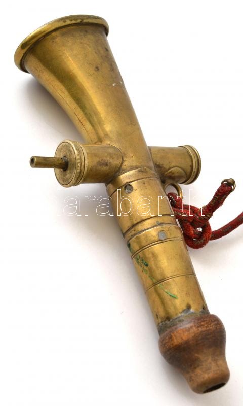 cca 1900 Tűzoltó síp bojttal, réz, hiányos, 17×8 cm, bojt h:47 cm https://www.darabanth.com/de/30-Gross-Auktion/30.1/Andere-Sammelgebiete/Kunst-Antikvitaten~12175/cca-1900-Tuzolto-sip-bojttal-rez-hianyos-17C3978-cm-bojt-h47-cm~II1863423