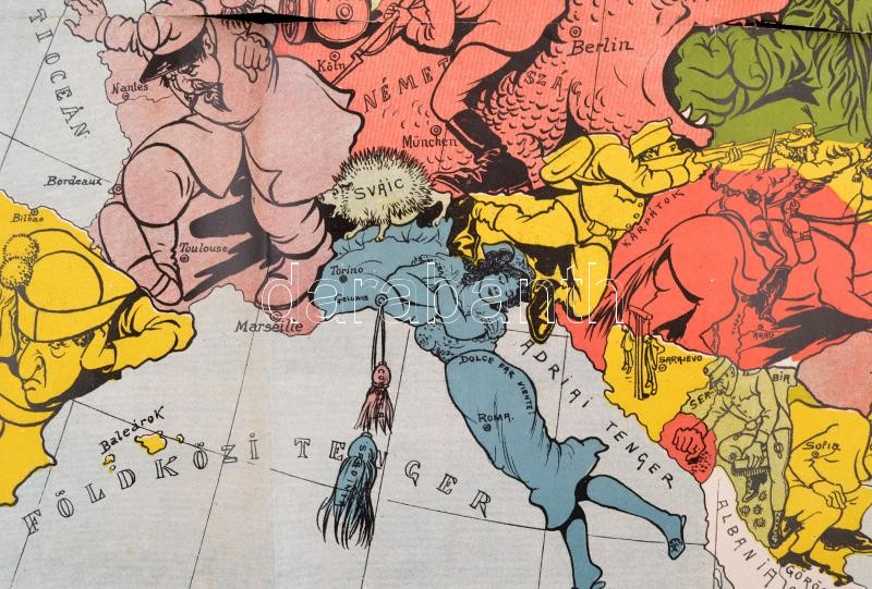 1914 A háborús Európa térkép-karikatúrája 1914, rajzolta Varga Imre, B... https://www.darabanth.com/de/30-Gross-Auktion/30.1/Andere-Sammelgebiete/Landkarten~12617/1914-A-haborus-Europa-terkep-karikaturaja-1914-rajzolta-Varga-Imre-Bp-Rosenthal-ny-a-ha~II1861042