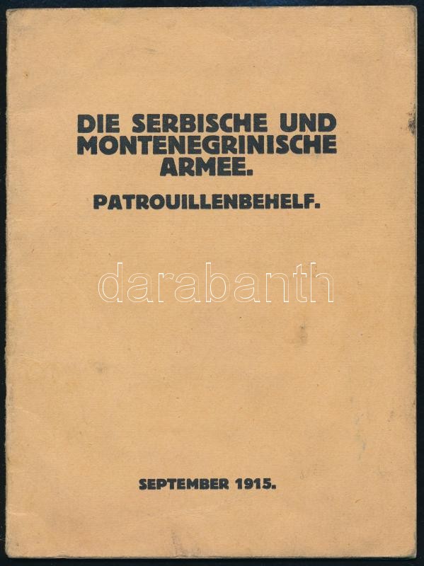 1915 Die serbische und montenegrinische Armee. Patroullenbehelf. Wien, Friedrich Jasper, 5+27 p. Német nyelven. Kiadói papírkötés, névbejegyzéssel, jó állapotban. /