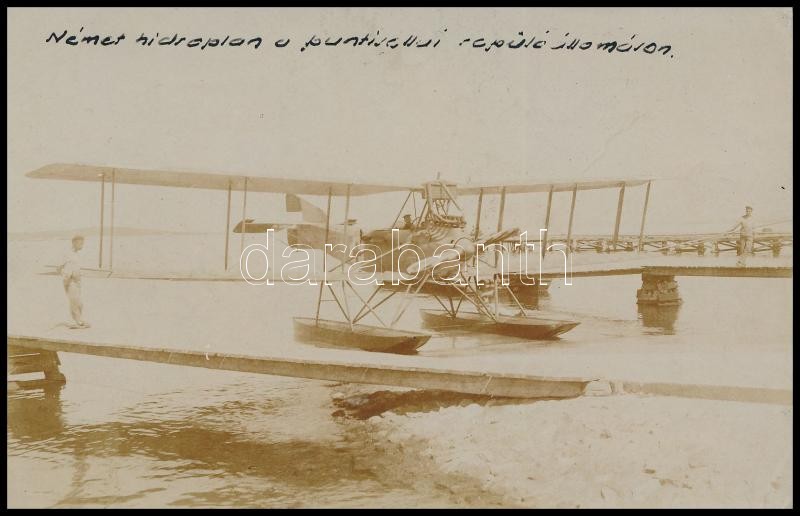 Beschreibung: 1917 Friedrichshafen FF 49 típusú német hidroplán a puntisellai repülőállomáson / German hidroplan in the puntisella airbase 9x14 cm