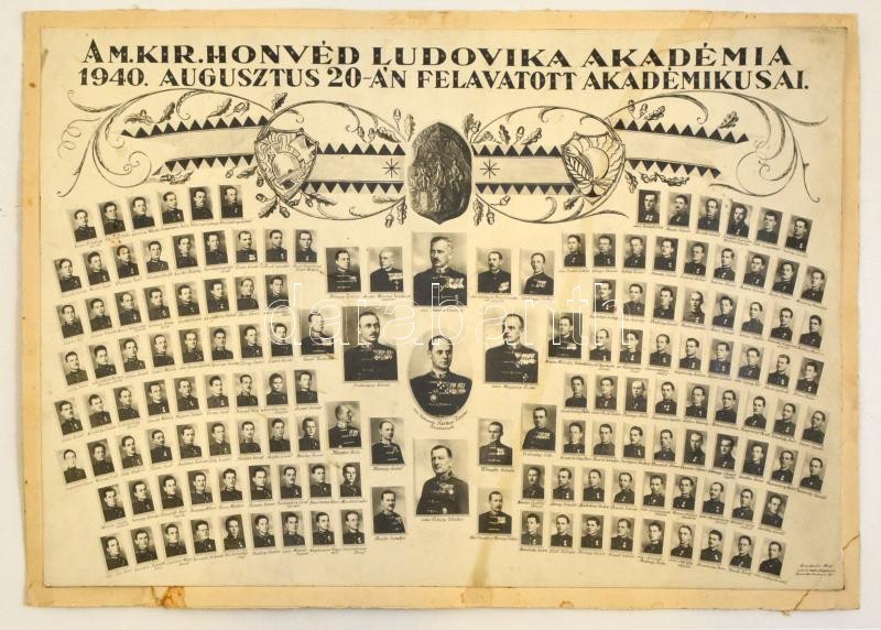 1940 A m. kir. Ludovika Akadémia 1940. augusztus 20-án felavatott akadémikusai, tablókép, Brunhuber Béla, Budapest, kartonra ragasztva, sérült, 33×46 cm